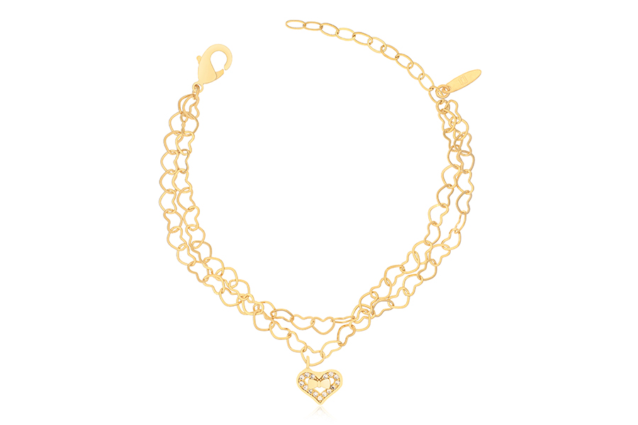 PULSEIRA BANHADA EM PRATA LEVE, ELO VENEZIANA 0,80mm, EXTENSOR 5,50cm COMPRIMENTO, DOIS CORAÇÕES, LISO OU ACETINADO
