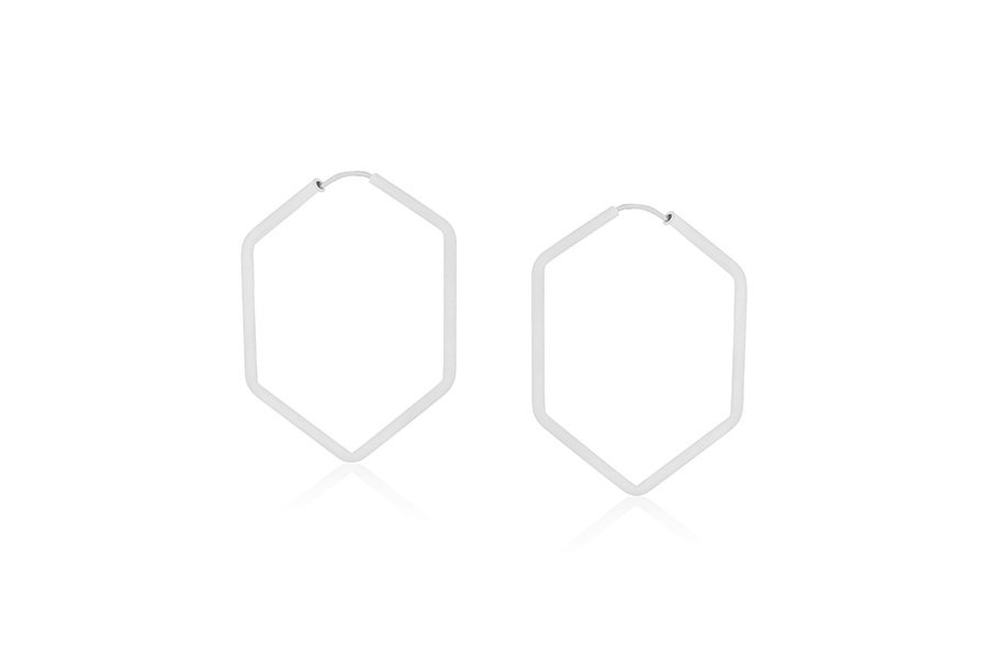 BRINCO BANHADO EM RÓDIO BRANCO, ARGOLA RETANGULAR 16x14mm