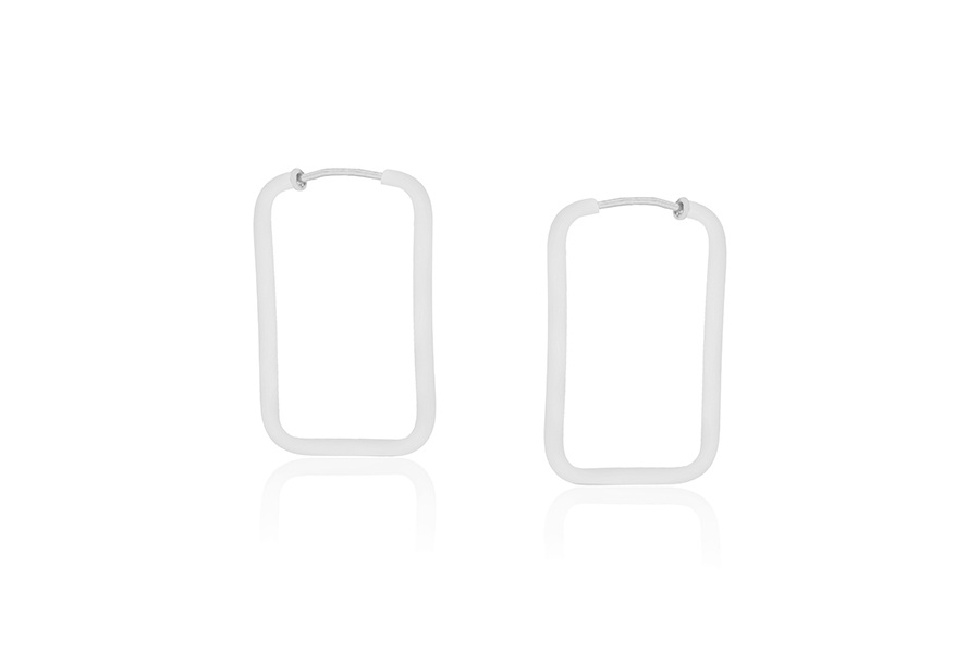 BRINCO BANHADO EM RÓDIO BRANCO, ARGOLA RETANGULAR 16x14mm