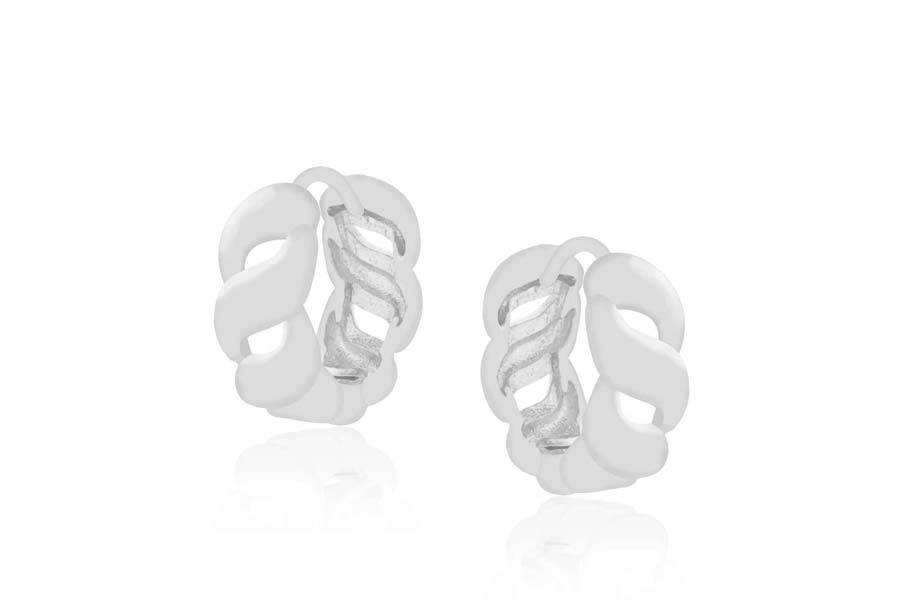 BRINCO BANHADO EM RÓDIO BRANCO, ARGOLINHA RISCADA 17mm DIÂMETRO