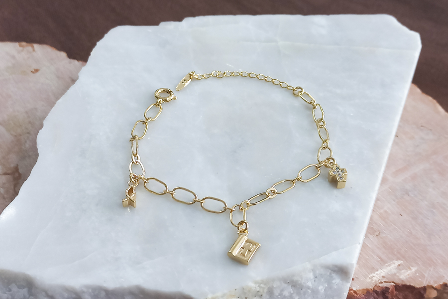 PULSEIRA BANHADA EM OURO, CORRENTE ELO PORTUGUÊS 5mm, 17cm COMPRIMENTO, EXTENSOR 5cm COMPRIMENTO E PESO 4,60g