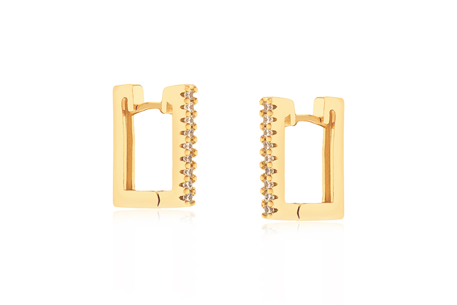 BRINCO BANHADO EM OURO, CRISTAL QUADRADO 8X8mm